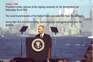 When President Johnson signed the INA into law on October 3, 1965, the racial transformation of the US was underway. That evening, across NYC, Jews…