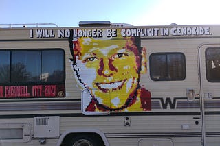 Tomorrow morning, worshippers at a Megachurch will arrive to the sight of a mural reminding them they are complicit in genocide.